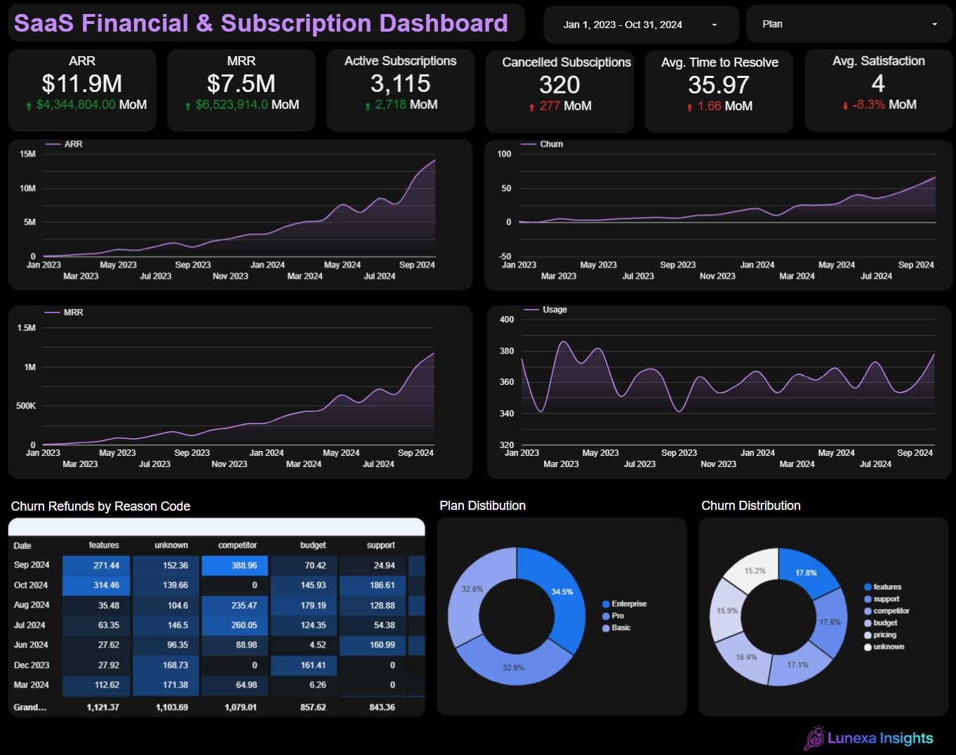 Executives were flying blind. Subscription activity lived in one system, costs in another, and customer value was scattered across spreadsheets. Without a unified, real-time view, leadership couldn’t answer basic questions: Are we profitable this quarter? Are we retaining customers? Is growth sustainable? Decisions were slowed, and financial risk mounted until Lunexa Insights built a centralized dashboard that brought clarity in minutes, not months.